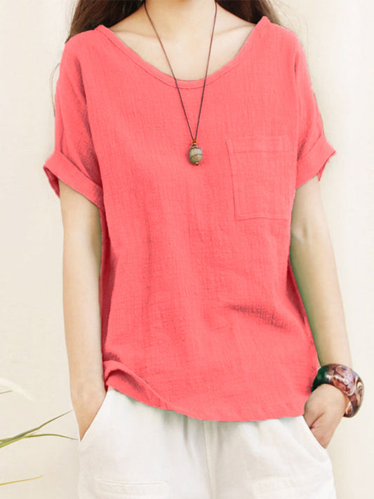 ⚡Flash Sale - Today Only – 25% OFF!⚡Aurevia | Linnen blouse met ronde hals