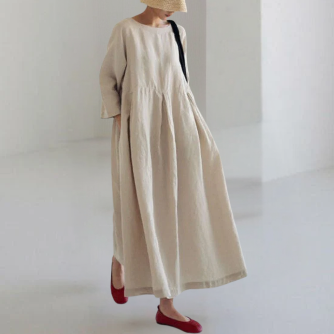 Auralynne is gemaakt van de fijnste katoenmix, voor een licht, luchtig gevoel dat je huid streelt bij elke draagbeurt. Of je nu thuis luiert, over de markt slentert of met vrienden gaat lunchen, met deze jurk voel je je moeiteloos elegant en ongelooflijk comfortabel.