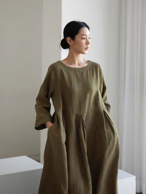 Ontworpen met een ontspannen maar getailleerde pasvorm en heupen, flatteert Auralynne je natuurlijke vorm zonder ooit strak of beperkend aan te voelen. Ze is gemaakt om je rondingen te vieren - niet om ze samen te drukken. Dit is zelfzorg in de vorm van een jurk.