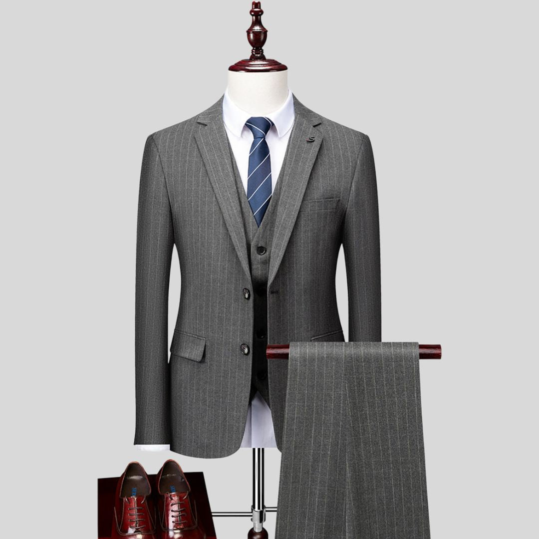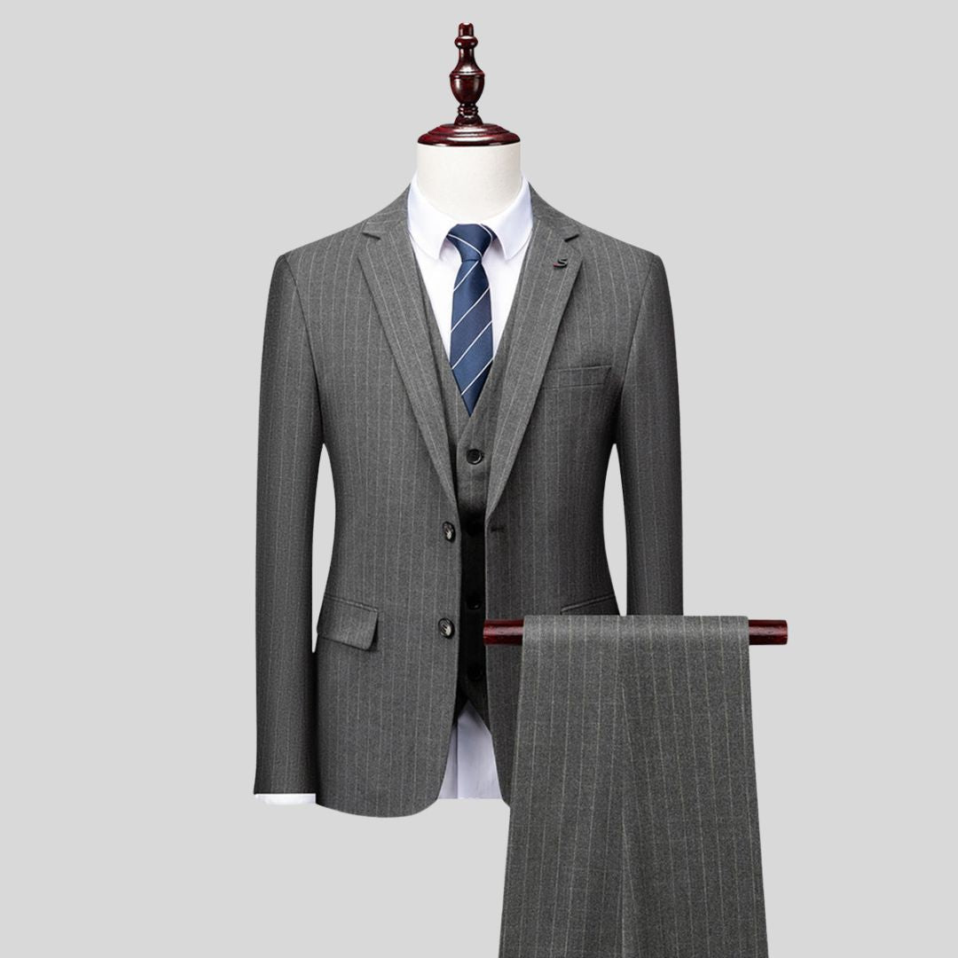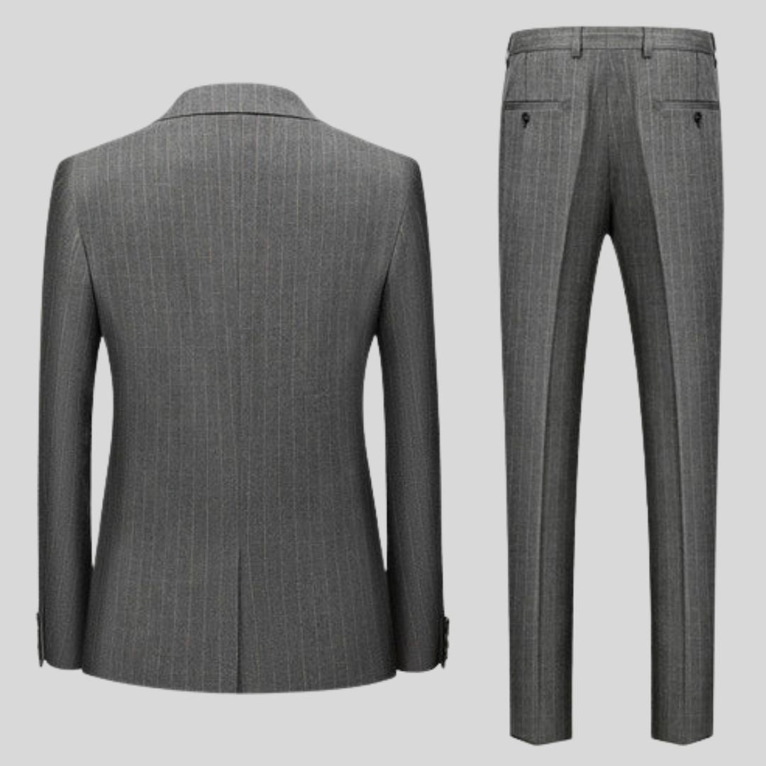 De meeste mannen hebben moeite om een pak te vinden dat een scherpe stijl combineert met comfort voor de hele dag - vooral als het evenement zich uitstrekt van ceremonie tot feest. Slecht passende of te formele pakken kunnen je bewegingsvrijheid beperken en je een oververhit of ongemakkelijk gevoel geven. Daarom creëerden we Valmere - het getailleerde gestreepte trouwpak dat zich aanpast aan je levensstijl zonder elegantie op te offeren.